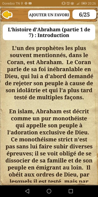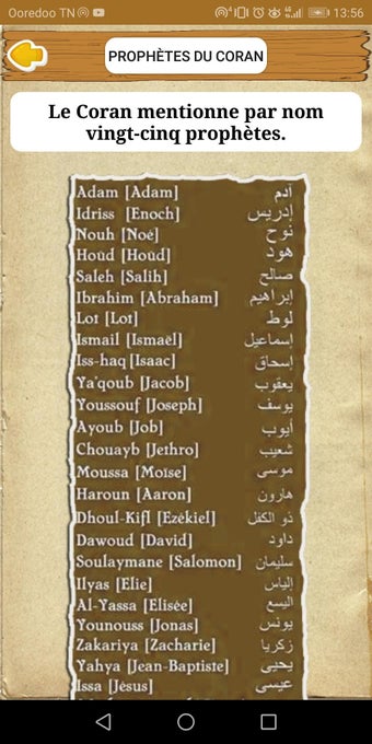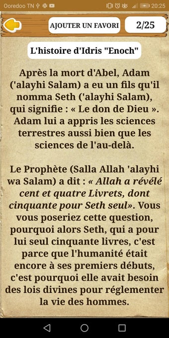 هذا التطبيق هو مجموعة كاملة من قصص الأنبياء باللغة الفرنسية، بمساعدة القرآن الكريم. تستند القصص إلى عمل الإمام ابن كثير. هذا التطبيق مفيد لجميع مستويات المتعلمين ويمكن استخدامه في مجموعة متنوعة من الإعدادات، على سبيل المثال، كأداة تعليمية للطلاب ومصدر للمعلمين والآباء.